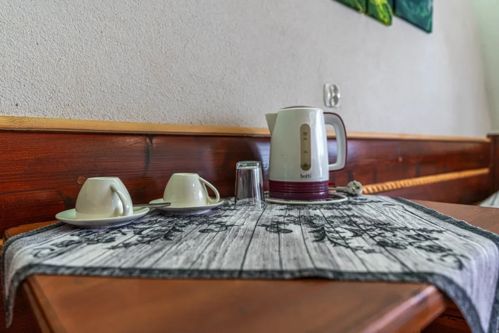 Do dyspozycji naszych gości oddajemy wyposażony aneks kuchenny, znajdujący się na korytarzu. Znajdziesz w nim: lodówkę, mikrofalę, czajnik elektryczny oraz potrzebne naczynia i sztućce. Dodatkowo: zewnętrzny basen (w sezonie letnim), grill, plac zabaw i bawialnia dla dzieci, w budynku. Jeśli chcesz odpocząć od gotowania podczas wyjazdu w góry, skorzystaj z naszej oferty noclegu z wyżywieniem.